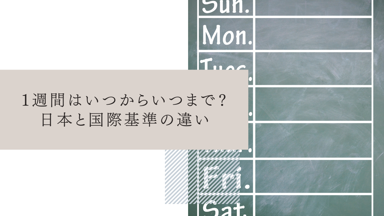 1週間の始まりは「国際的には月曜日」、日本の生活文化では「日曜日」からと覚えておくと混乱しにくいでしょう。