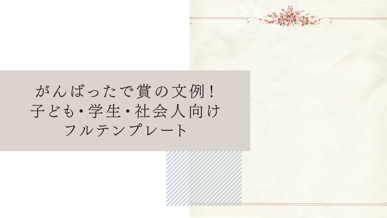 本記事では、子ども向け・学生向け・社会人向けのフルバージョンの賞状文例を多数紹介。具体的な行動や努力を褒めるポイントや、手書き・印刷テンプレートの活用法も解説しています。