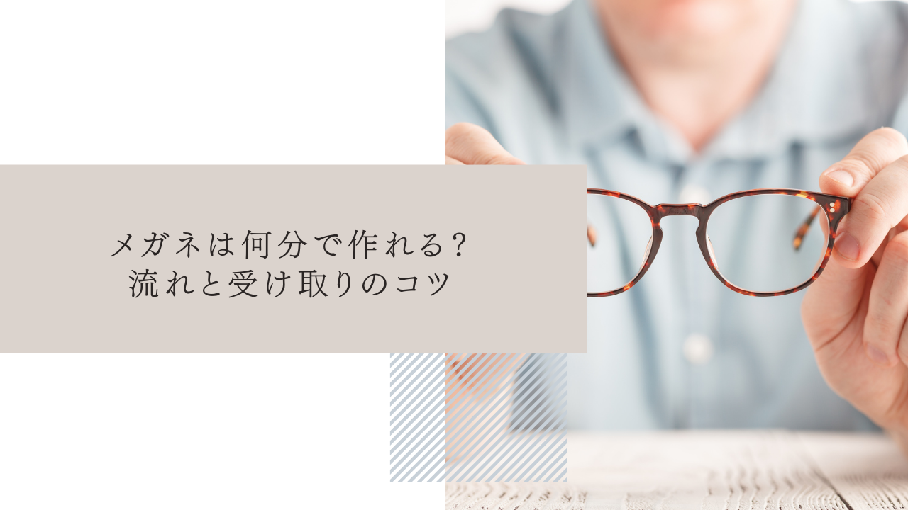 視力検査、フレーム・レンズ選び、レンズ加工、フィッティング調整といった各工程の所要時間を具体的に紹介し、短時間で済ませるためのポイントや店舗選びのコツもまとめました。標準的なレンズの場合は最短30分から1時間で受け取れることもありますが、特殊仕様では別日になる場合もあります。