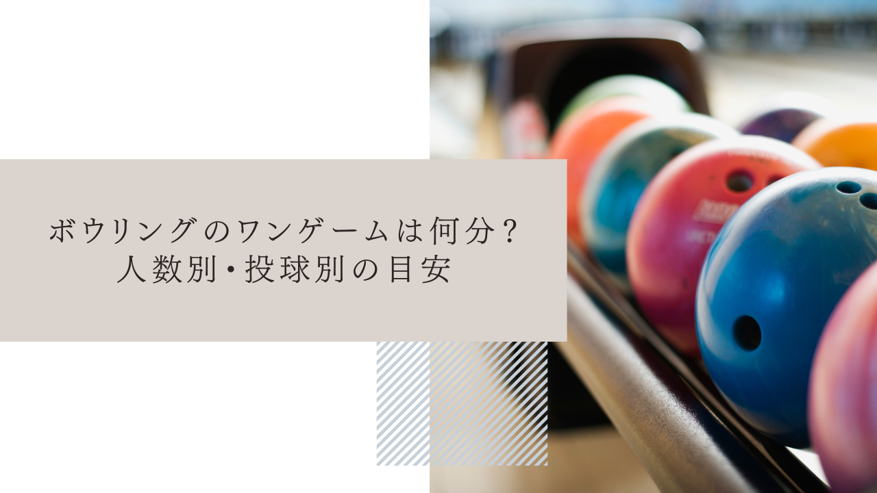 ボウリングのワンゲームは、人数や投球スピード、技術によって所要時間が変わります。1人の場合は約9分から14分、4人でのプレイは約40分から1時間程度が目安です。